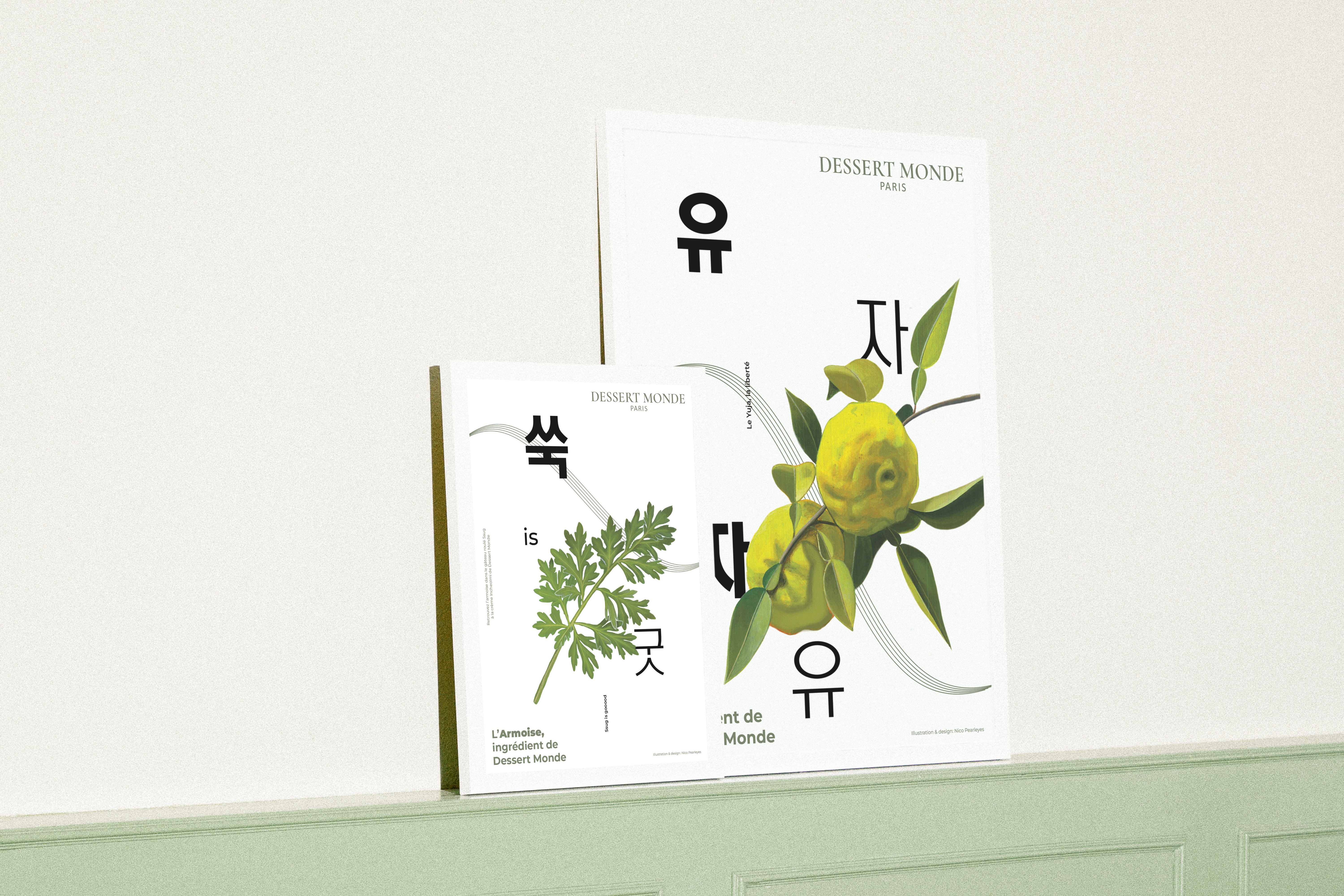 Dessert Monde propose des ateliers de création de pâtisseries à partir de ses recettes. Soucieuse de l'expérience client, la marque commande une série d'affiches mettant en scène ses ingrédients clés. Plus que de la décoration, le but est d'immerger les clients dans l'univers unique de la marque, de ses valeurs, et de rendre l'expérience mémorable.