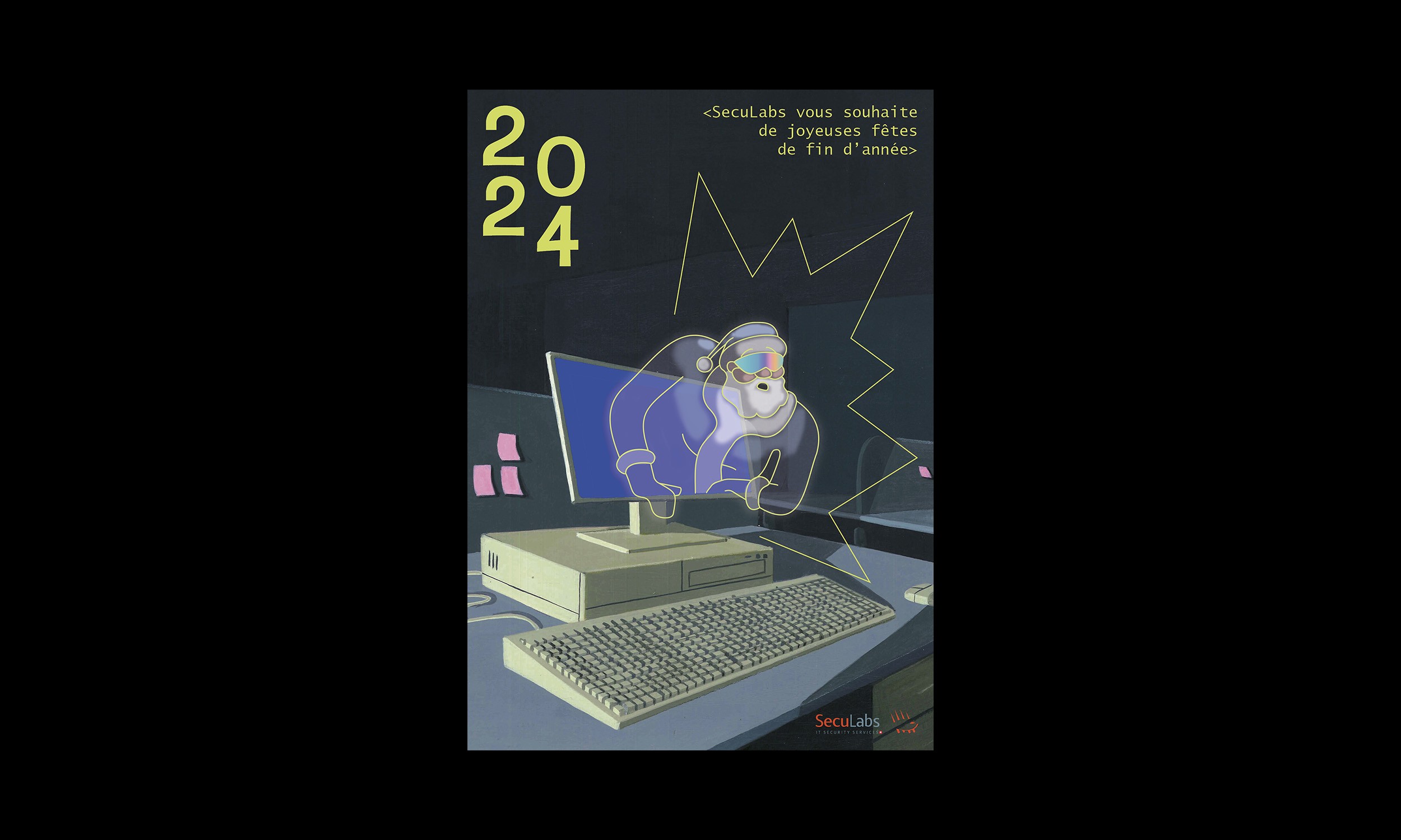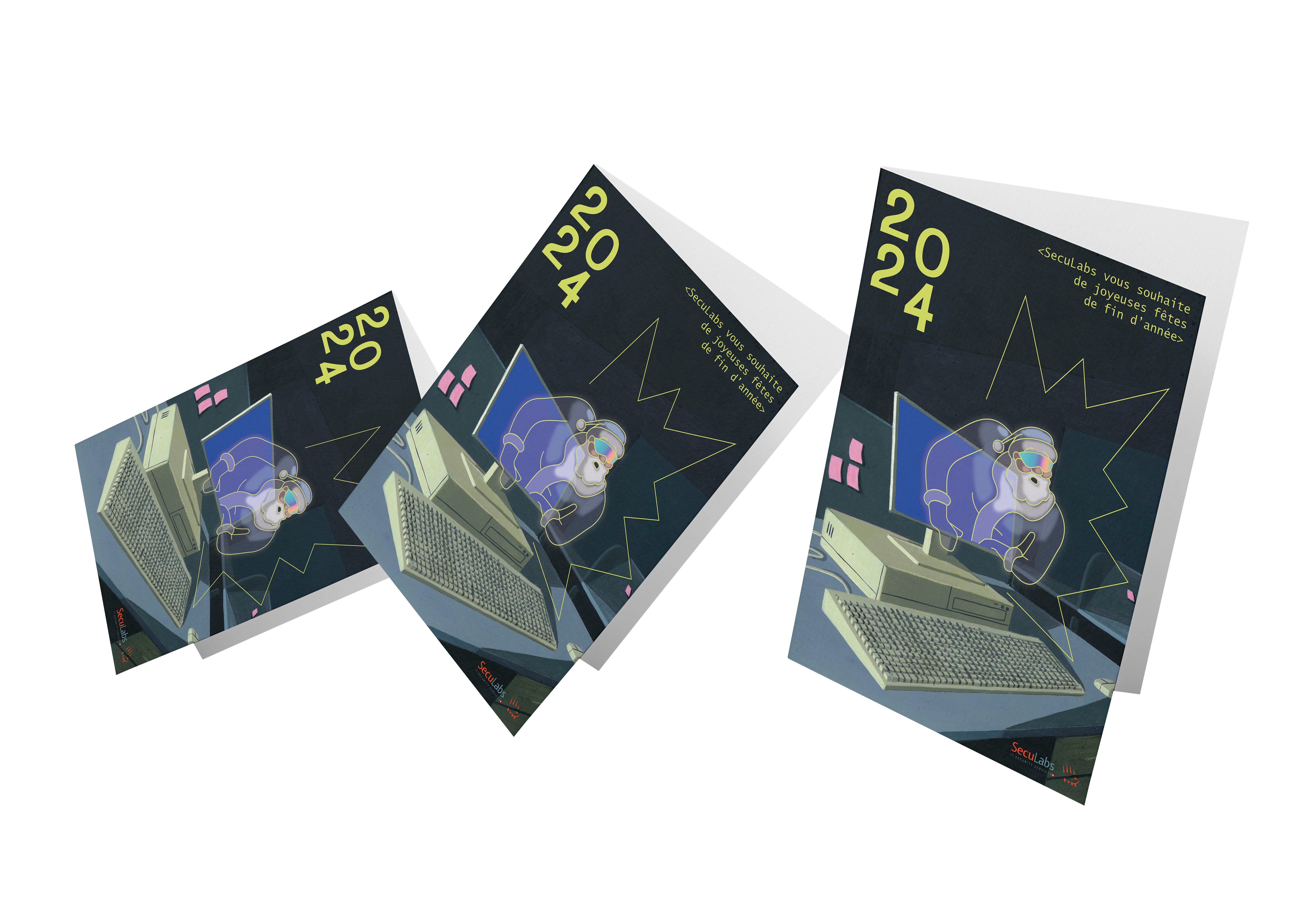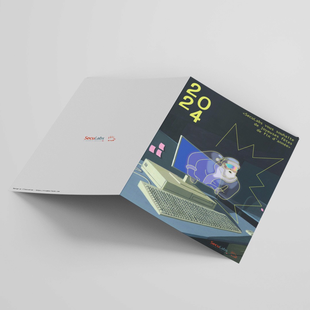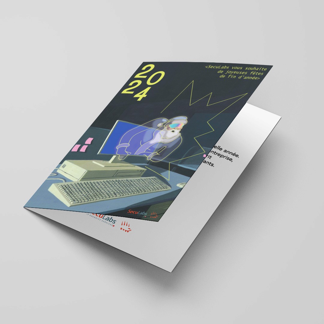 La carte de fin d'année est un support de communication stratégique pour marquer les esprits et se faire retenir de ses clients et partenaires. C'est ce qu'a compris Seculabs, société d'informatique, en demandant une carte personnalisée et illustrée, qui se démarque des nombreux modèles génériques qui envahissent les boîtes aux éettres.