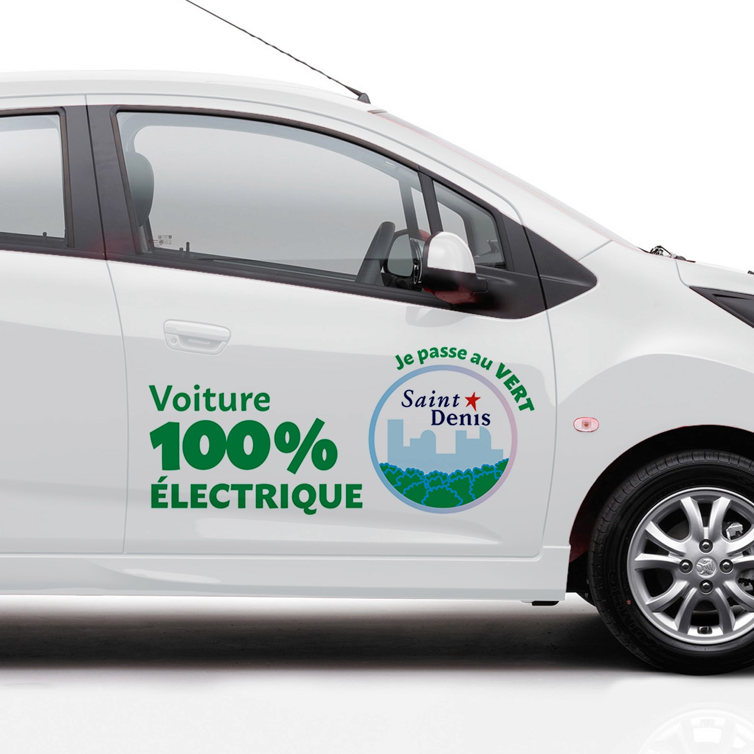 Pour communiquer sur ses efforts en matière de durabilité, la ville de Saint-Denis demande des flocages pour ses véhicules électriques et gaz de ville.