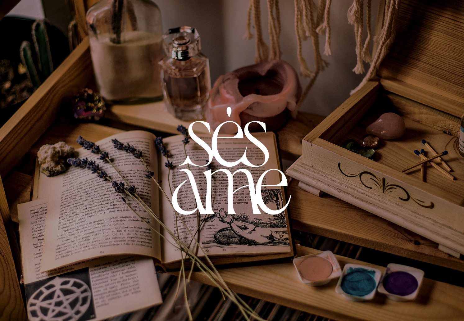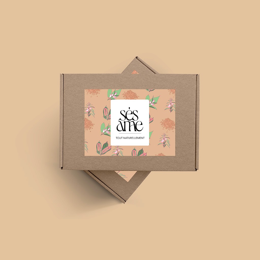 Un logo inspiré de l'art nouveau, tout en finesse et en féminité, pour Sésâme, marque de de cosmétiques, d'encens et parfums à base de sésame.
